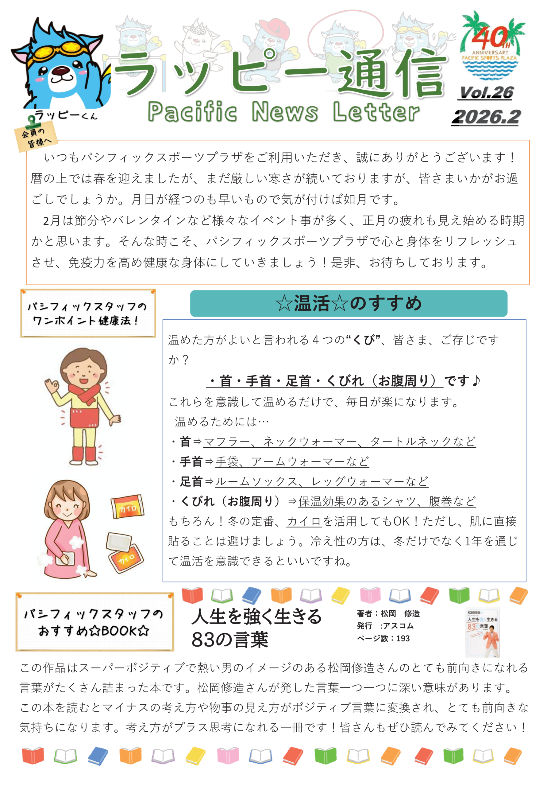 ラッピー通信 2026年2月号|スポーツジム・フィットネスクラブならパシフィックスポーツプラザ